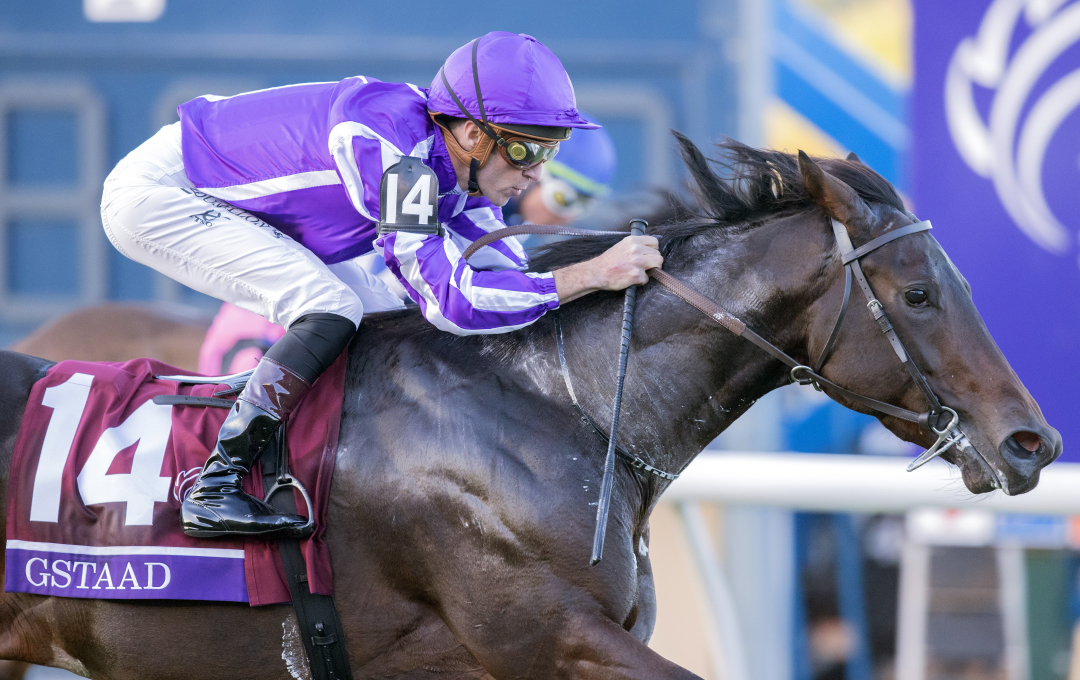 After narrow defeats as the favorite in Group 1 stakes in France, Ireland, and England, Gstaad scored his breakthrough victory in Southern California, taking the Breeders’ Cup Juvenile Turf on Oct. 31 at Del Mar. It was a victory that landed Gstaad a spot as a finalist for the Eclipse Award in the 2-year-old male division.