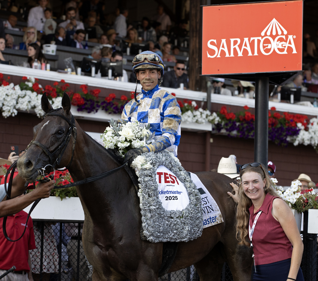 SARATOGA SPRINGS, N.Y. – Nearly 48 hours after Kilwin upset the Test Stakes here Saturday, trainer Rusty Arnold admitted he still found it a little hard to believe his filly was able to pick herself back up following a near disastrous start to win one of the most prestigious sprint races for 3-year-old fillies.