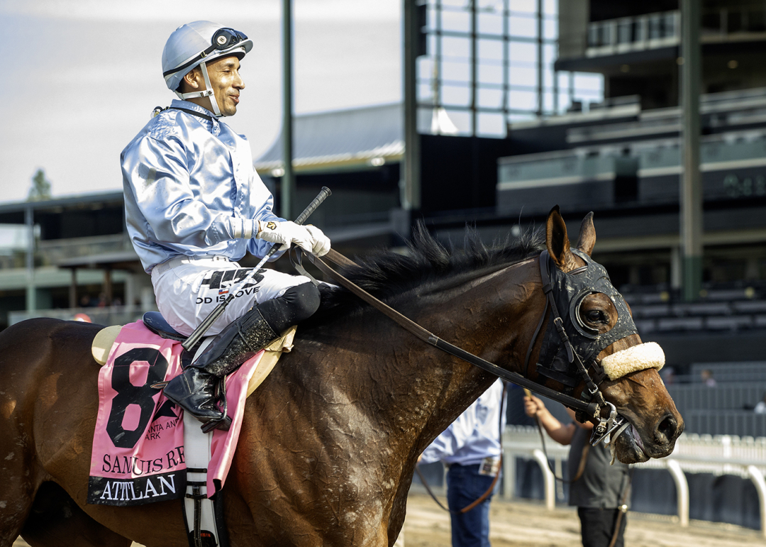 Owned by John O’Connor, Atitlan would have been a leading contender in the $200,000 John Henry Turf Championship, run at 1 1/4 miles. Atitlan won consecutive stakes in the Grade 3 San Luis Rey Stakes in March and the Grade 2 Charles Whittingham Stakes in May. In his last start, Atitlan was third by a neck to Gold Phoenix in the Grade 2 Del Mar Handicap on Aug. 30.
