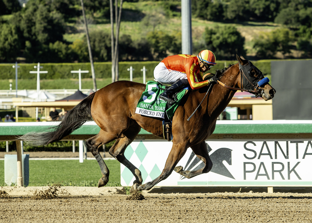 ARCADIA, Calif. - Forced Entry concluded an outstanding weekend at Santa Anita for trainer Bob Baffert and jockey Juan Hernandez with a sharp win in her stakes debut in Sunday’s Grade 3 Santa Ysabel Stakes for 3-year-old fillies.