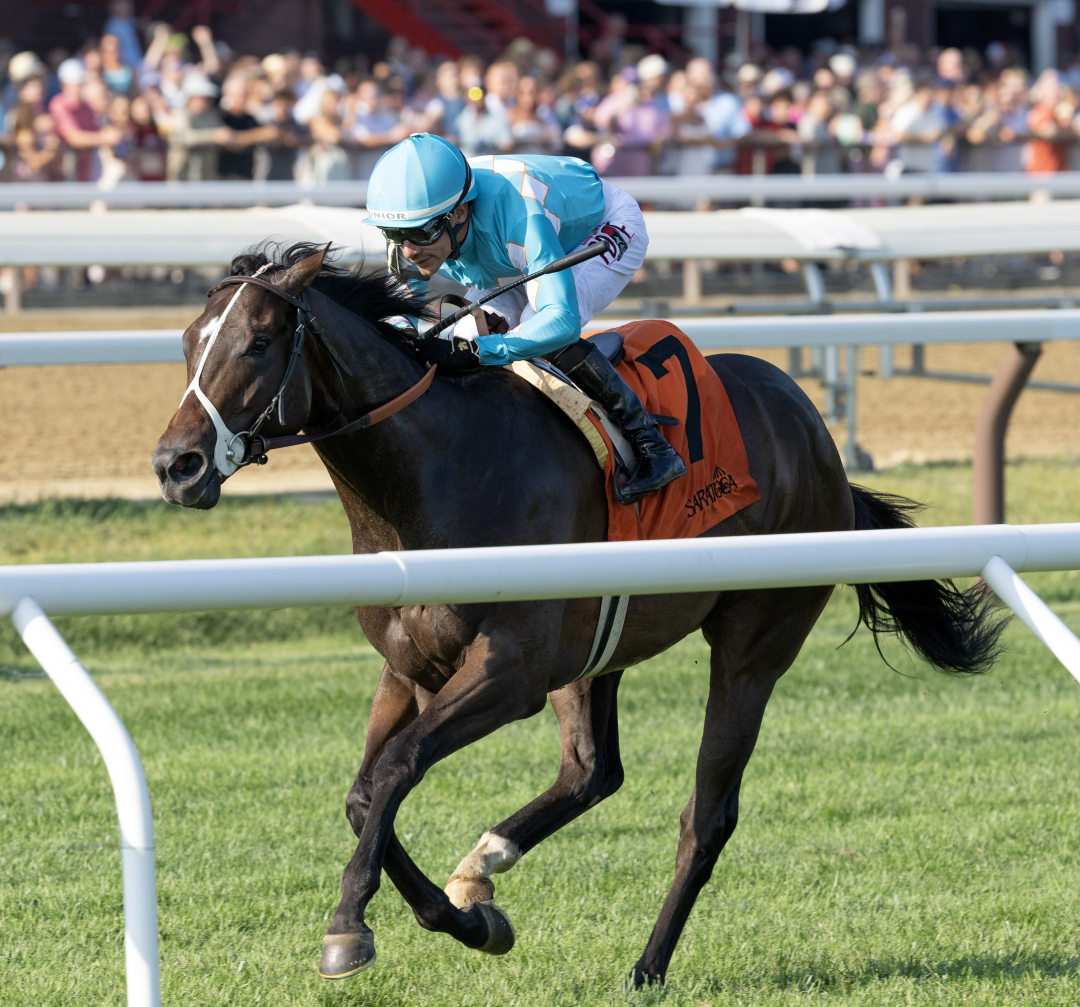 With Junior Alvarado aboard for the first time, Bobrovsky broke well before easing back off the early pace of Monster, who also entered the Skidmore off a one-sided maiden win in his previous start. Bobrovsky came three wide while commencing his rally leaving the turn, gradually overtook the leader approaching the sixteenth marker before edging clear at the end.