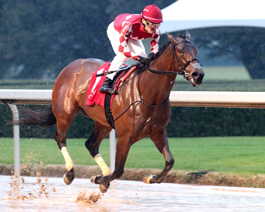 The Dixie Belle was for 3-year-old fillies over six furlongs. The sealed track was downgraded from fast to sloppy earlier on the card as rains hit for the balance of the program.