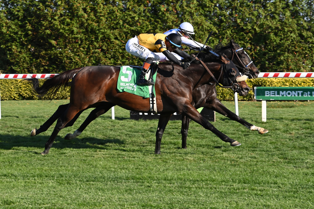 Cugino sat just off Common Defense, who set fractions of 24.31 seconds for the opening quarter, 50.90 for the half-mile, 1:17.01 for six furlongs and 1:41.64 for the mile. Cugino went after the leader in the stretch and fought for the win one start after winning at a mile in the Red Bank at Monmouth Park.
