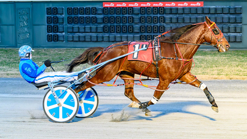 Primo Maschio got away third in the five-horse field before Trae Porter angled him off the pegs midway on the first turn to strike the lead at the end of a 28 3/5 first quarter. After seizing control, the Badlands Hanover-Primadonna gelding traveled unopposed through middle splits of 58 seconds and 1:27 before steadily edging clear of pocket rival Maximum Luck (driven by Jason Green) on the far turn to record his ninth win of the season and 18th overall from 26 starts. Big Hunk A Money (Jason Thompson) mounted a mild rally off the home turn to finish second, ahead of Maximum Luck.
