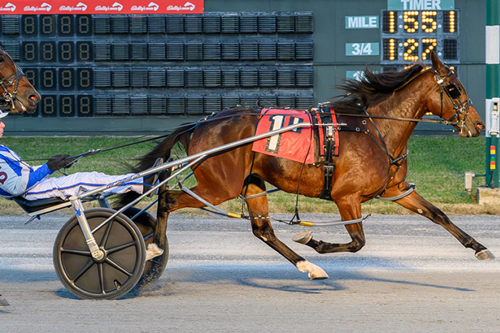 The first section saw Just Applause and driver Tim Tetrick roll to a pillar-to-post 1:56 2/5 win, defeating pocket rival Meemaw's Column (Russell Foster) by 2 1/4 lengths. Nicki's Watching (Roger Plante Jr.) rallied mildly off the home turn to finish third.
