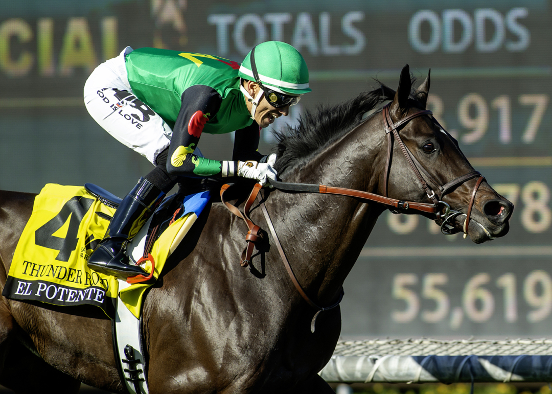 ARCADIA, Calif. – El Potente turned back time Saturday at Santa Anita, where the 7-year-old front-running veteran won the Grade 3 Thunder Road Stakes for a second straight year.