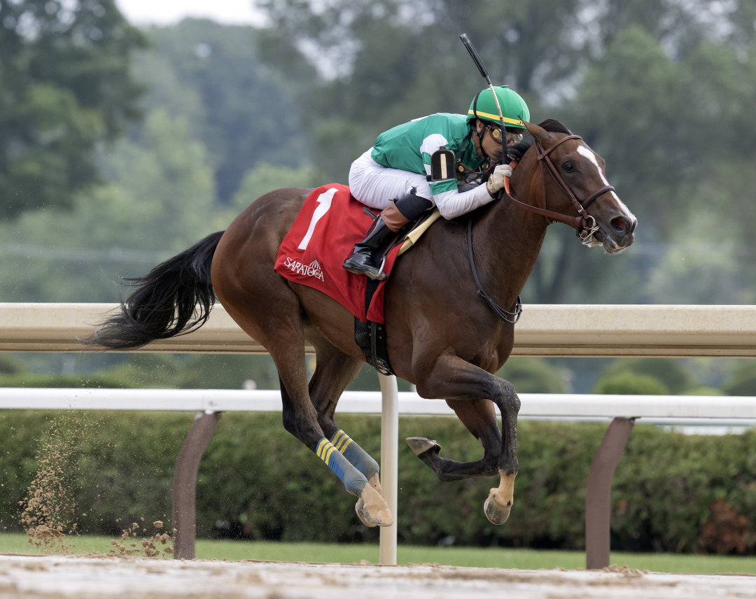 Spa Prospector will be making her first start beyond 6 1/2 furlongs, the distance over which she ran third to Mythical in the Grade 3 Adirondack in August at Saratoga. Spa Prospector earned a shot at stakes competition off a sharp maiden win at Saratoga in which she covered six furlongs in 1:10.94. It was her second start after she “gained a lot of education” in a debut in which she finished seventh, according to Amoss.