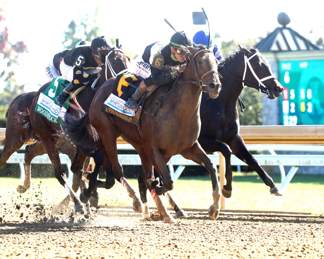 LEXINGTON, Ky. – Like a wine getting better with time, every second, every stride, down the Keeneland stretch, A Fine Chardonnay's chances of winning appeared better. Last down the backstretch, the filly uncorked a stout rally to win the $250,000 Myrtlewood Stakes for 2-year-old fillies on Friday, penultimate day of the fall meet at Keeneland.
