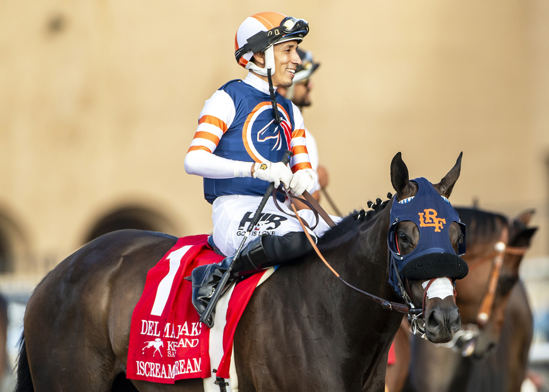 Iscreamuscream won her first four starts in 2023 and 2024, including the Grade 2 San Clemente Handicap for 3-year-old fillies at a mile on turf at Del Mar in July 2024. A month later, she won the Del Mar Oaks at 1 1/8 miles on turf by 1 1/2 lengths, her final victory.