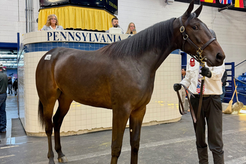 Augusta National, from the first crop of Pebble Beach, consigned by breeder All American Harnessbreds and purchased by Brett Pelling, is a brother to 2-year-old pacing colt Signal Caller, who won at The Red Mile in 1:48 4/5 this year.
