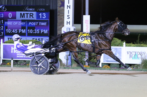 Nancy Takter trains Captain Optimistic, a Captaintreacherous colt bred by Fair Winds Farm, for owners 3 Brothers Stables, Marvin Katz, Caviart Farms and Deo Volente Farms. He has 12 wins, six seconds and five thirds from 28 appearances, has earned $1,024,527 and paid $3.60 to win as the 4-5 favorite.