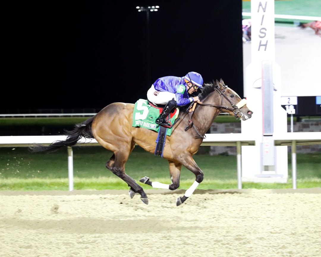 Hen Party helped Rodriguez secure Turfway’s meet riding title over Luan Machado, who was aboard Cadenza, 45 wins to 43. Rodriguez earned a sweep of the titles this season at Turfway, which officially divides its four-month stand on the Kentucky circuit into two meets – the holiday meet in December, and the winter-spring meet, which ran Jan. 1 through March 28. Rodriguez also took the riding title over Machado, 26 wins to 13, for the December holiday meet.
