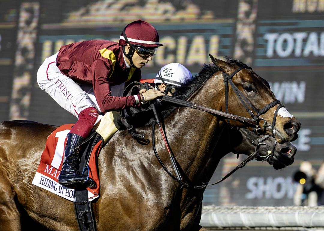 Jonathan Thomas trains Hiding in Honduras, who was making just his third start in the Mathis, a turf mile restricted to 3-year-olds. He won his sprint debut at Presque Isle Downs, followed by a lackluster fourth in the Let It Ride Stakes racing two turns on turf Oct. 30 at Del Mar.