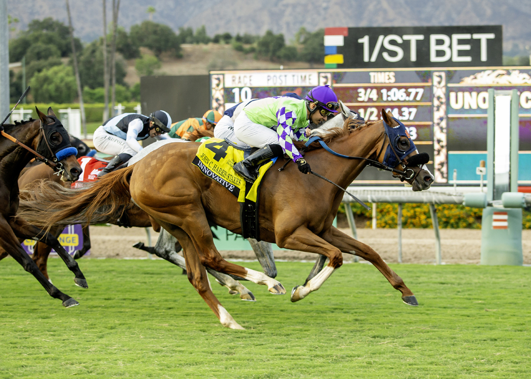 Innovative scored a $27.40 upset in the Harris, winning by a neck under jockey Ricky Gonzalez. It was the filly’s third win from her last four starts, and more impressive considering it was the first sprint of her career. Innovative returns to her preferred two-turn distance Sunday.