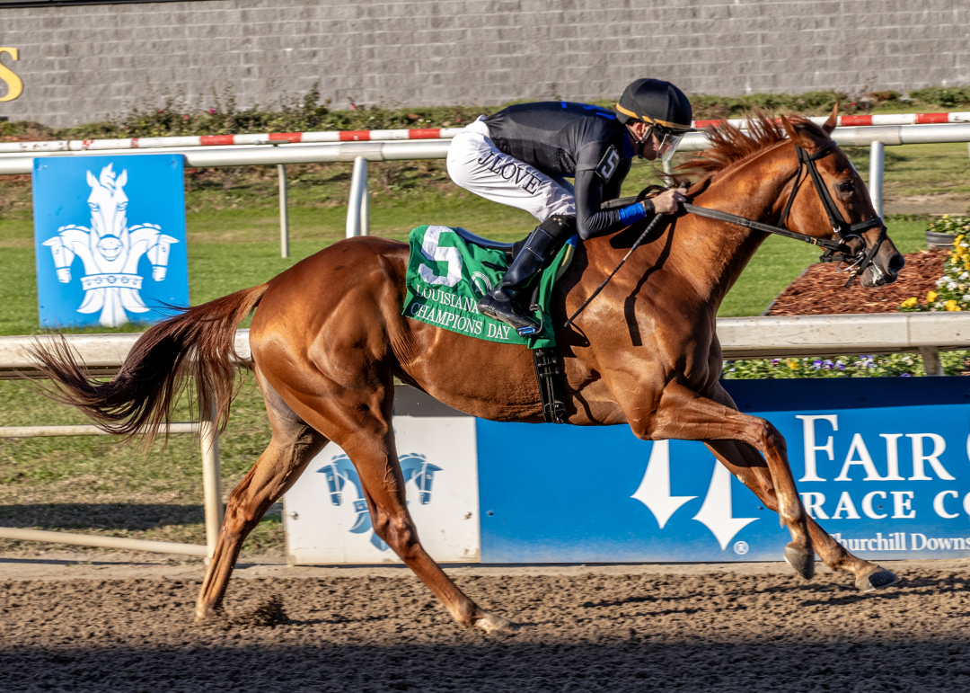 Bret Calhoun trains Our Moneyman for his breeder, Chester Thomas’ Allied Racing Stable. Our Moneyman is by Mr. Money out of Lipstick Junky, by Flatter. Not as fast as the filly, but fast enough for his own win on Louisiana Champions Day.