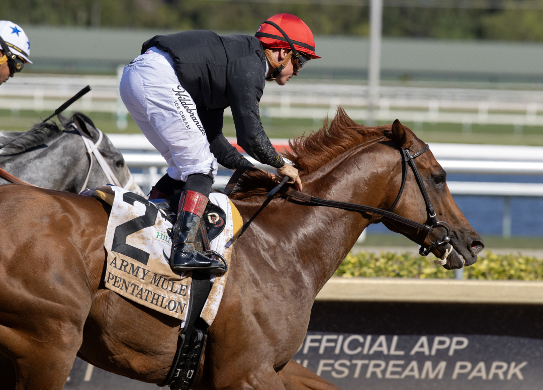 Pentathlon, winner of both his starts this year, including the Army Mule Stakes at Gulfstream Park on March 28, is on target for the Grade 3, $175,000 Westchester Stakes at Aqueduct on May 3, trainer Shug McGaughey said.