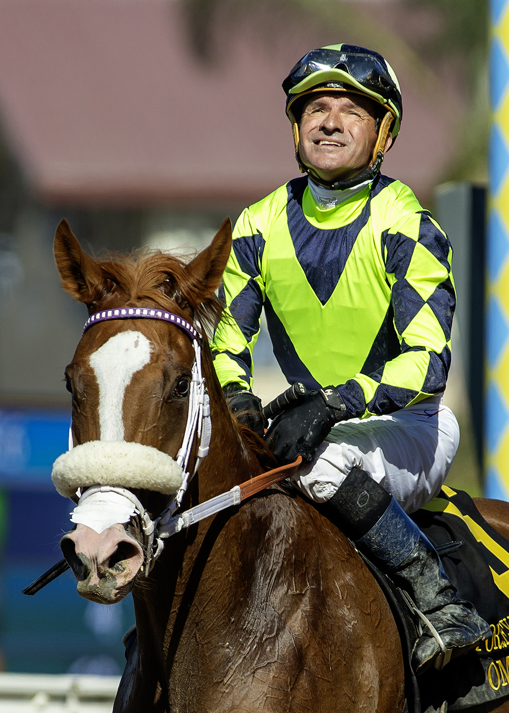 Ordonez, 58, has trained since 2004. She had her first stakes win when Om N Joy won the Evening Jewel Stakes at 6 1/2 furlongs for statebred fillies at Santa Anita last April, and her first graded stakes win when Om N Joy won the Grade 3 Torrey Pines Stakes at a mile at Del Mar last August for her fourth consecutive win.