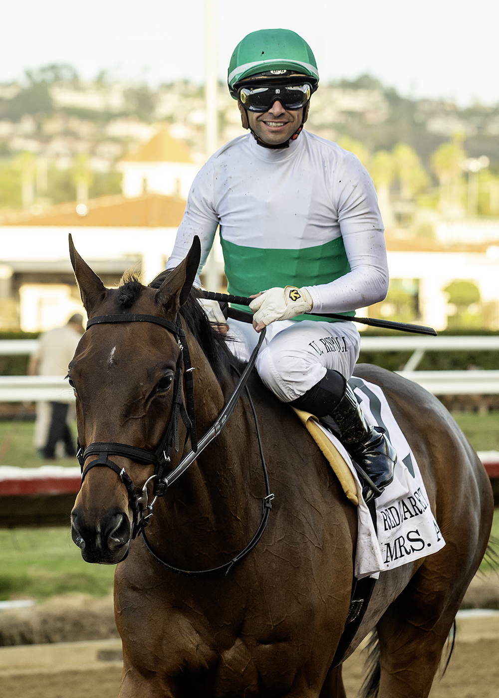Thomas said Mrs. Astor is scheduled to be sent to Kentucky in February. Aside from the two wins in the Red Carpet, Mrs. Astor’s victories include the Frankel Stakes last December, and two marathon turf stakes at Santa Anita earlier this year – the Santa Barbara and Possibly Perfect stakes.