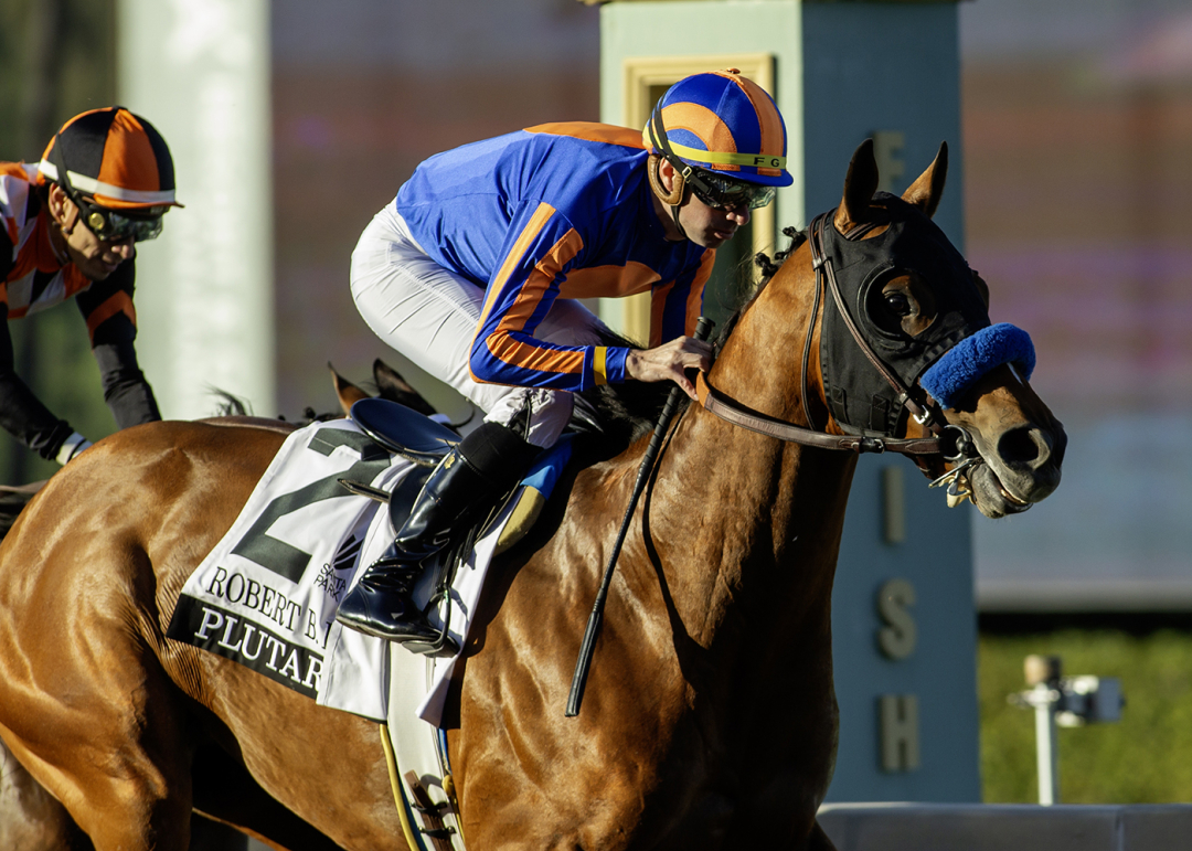 Bob Baffert scored his eighth consecutive Lewis victory with Plutarch ($10.20) in the mile race, and jockey Florent Geroux told Baffert that Plutarch was just getting warmed up.