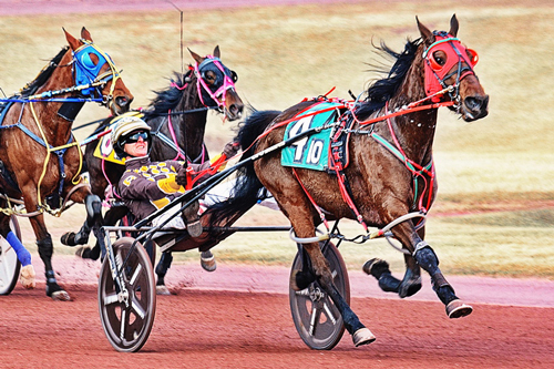 In the other feature trot, the Perfect Spirit gelding Zenmeister S was sent off at 1-10 after opening his Stateside career with three victories. Two breaks before the eighth, along with a mile in which he never saw the pylons and was outside raw most of the way, gave his backers some tense moments, but Zenmeister S is now four-for-four in North America after overcoming his troubles by trotting home with identical 28 2/5 back quarters in a 1:55 3/5 victory, a neck ahead of Kovu As. Brett Beckwith had sulky duty for the meet's leading trainer Per Engblom and Order By Stable AB.