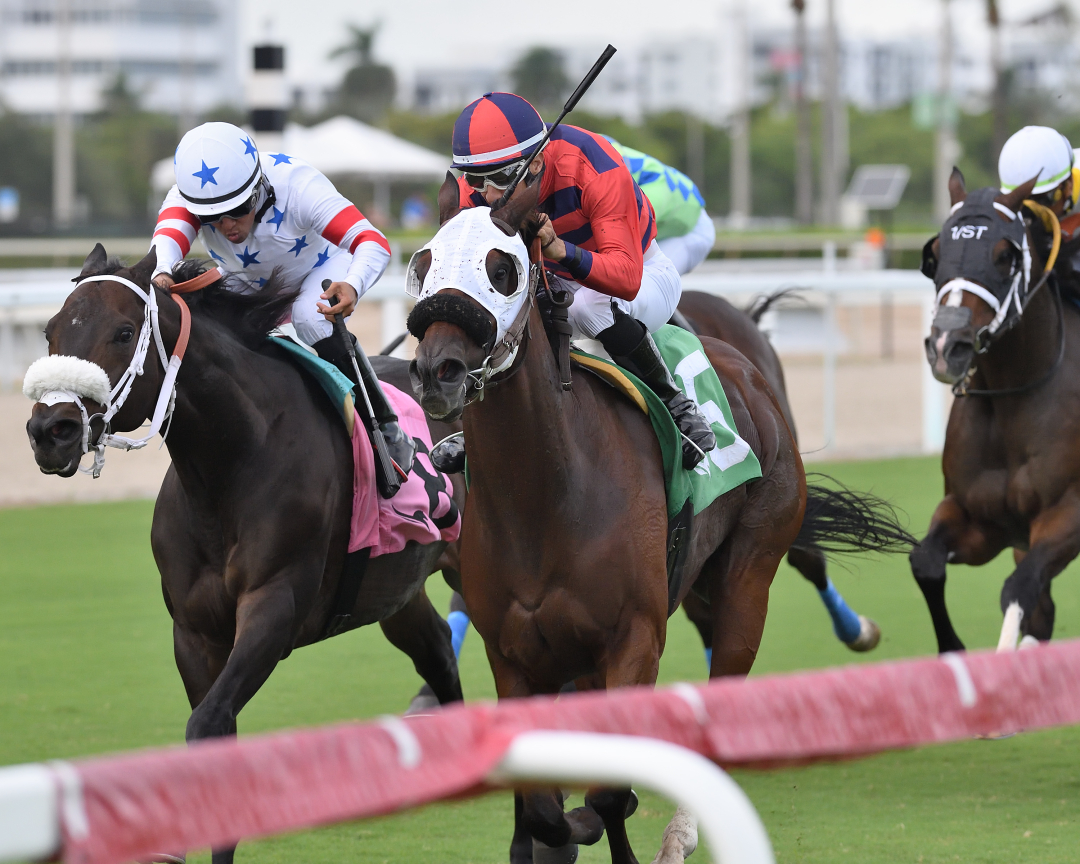 HALLANDALE BEACH, Fla. – After missing the first seven months of his 2025 campaign, Private Thoughts is certainly making up for the lost time. On Saturday, the 4-year-old notched his third and most important victory since returning to action here this summer when rallying to a head decision over a fast-closing Relampago Verde in the $70,000, 1 1/16-mile Jet Propulsion Handicap on the grass at Gulfstream Park.