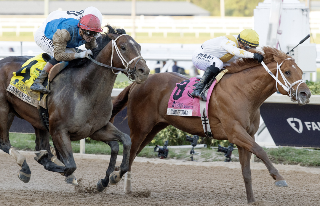HALLANDALE BEACH, Fla. - Even though Commandment and The Puma hit the finish line as one at the end of Saturday’s Grade 1 Florida Derby, trainer Gustavo Delgado and his son Gustavo Jr. were confident their horse, The Puma, had gotten to the wire first. It seemed the majority of those who watched the race, either on track or off, around the country did too.