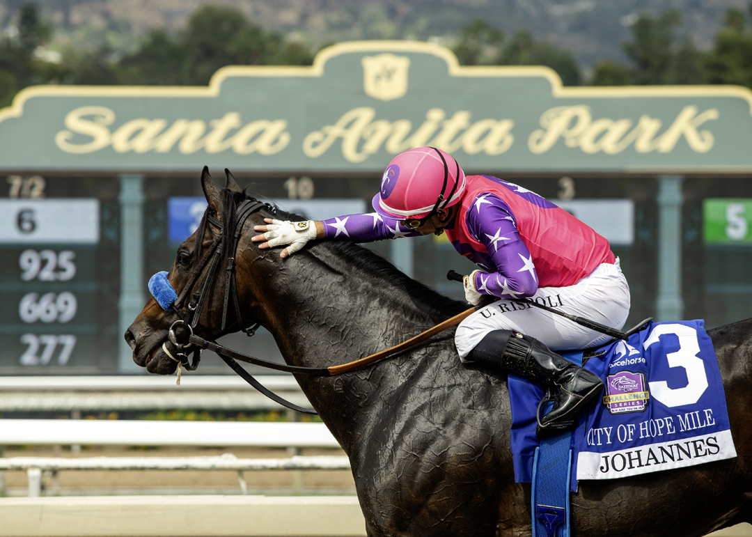 Johannes has won 9 of 15 starts, and is unbeaten in eight starts on turf at Santa Anita. At Del Mar, Johannes has started twice. He won the Grade 2 Eddie Read Stakes at Del Mar more than three months before the second-place finish in the BC Mile.