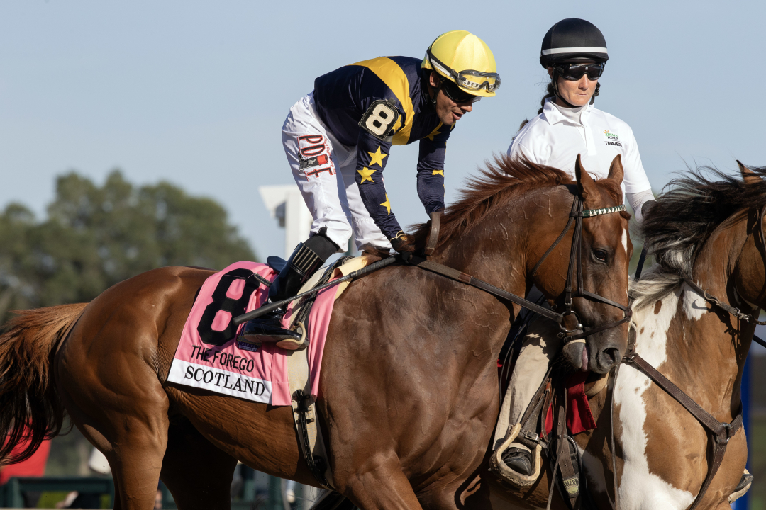 The Forty Niner is contested at a one-turn mile, a configuration in which Scotland is 2 for 2, including a win 11 months ago in the $250,000 Cherokee Mile at Churchill Downs. Scotland, a 5-year-old gelding by Good Magic trained by Bill Mott for LNJ Foxwoods, is winless in three starts this year, but was beaten only a length by sprint division leader Book’em Danno in the Grade 1 Forego at Saratoga.