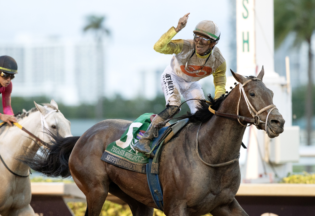 Although he was making an unprecedented fourth consecutive start in the Pegasus World Cup Invitational and entered the big event with career earnings of nearly $3.8 million, Skippylongstocking was basically overlooked going into the race by both the media and the public, who sent him postward at odds of 21-1. But Joseph had confidence in the 7-year-old son of Exaggerator exiting his victory in the Grade 3 Harlan’s Holiday four weeks ago.