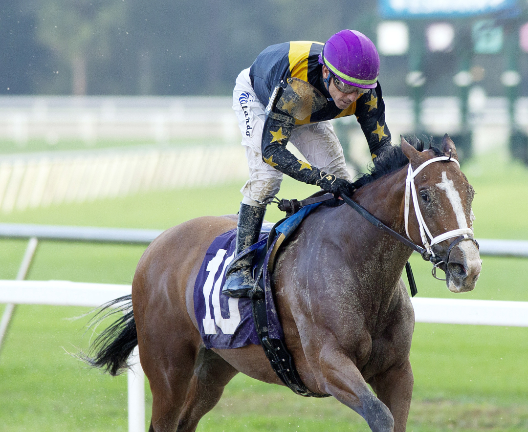 Just Bluffing’s only work since that Feb. 28 race, on March 28 at Churchill, suggests she could be ridden from off the pace again Friday. Just Bluffing, clocked in 48.20 for a half-mile, went past the finish line still well held and barely out of a gallop, but midway around the clubhouse turn her rider suddenly asked for run, and Just Bluffing gave it – explosively.