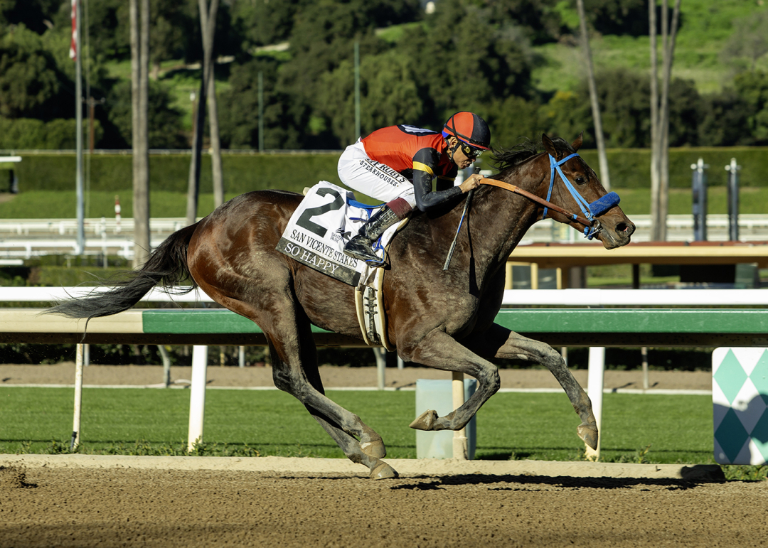 So Happy’s win in race No. 2 of his career - Saturday’s Grade 2 San Vicente Stakes at seven furlongs at Santa Anita - was easier to predict, and left Hall of Fame jockey Mike Smith eager to see what the colt can do at longer distances.