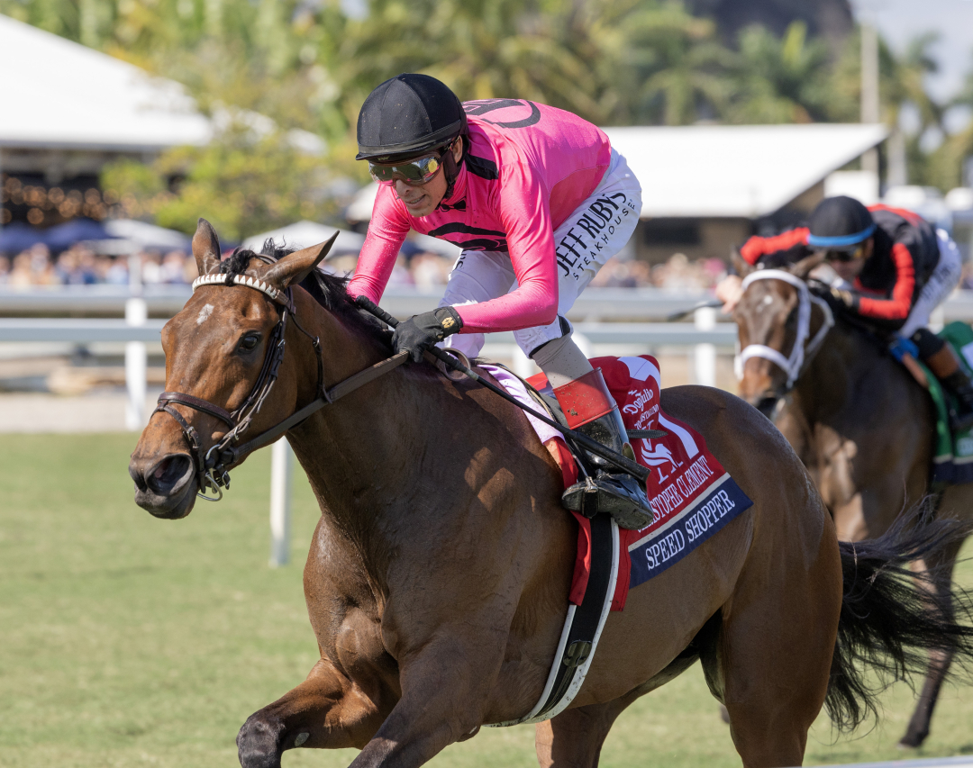 HALLANDALE BEACH, Fla. - Speed Shopper got a beautiful trip under John Velazquez, split horses in midstretch, and ran down stubborn pacesetter Ayra Stark to win Saturday’s Grade 3, $175,000 Christophe Clement Stakes at Gulfstream Park by 1 3/4 lengths.