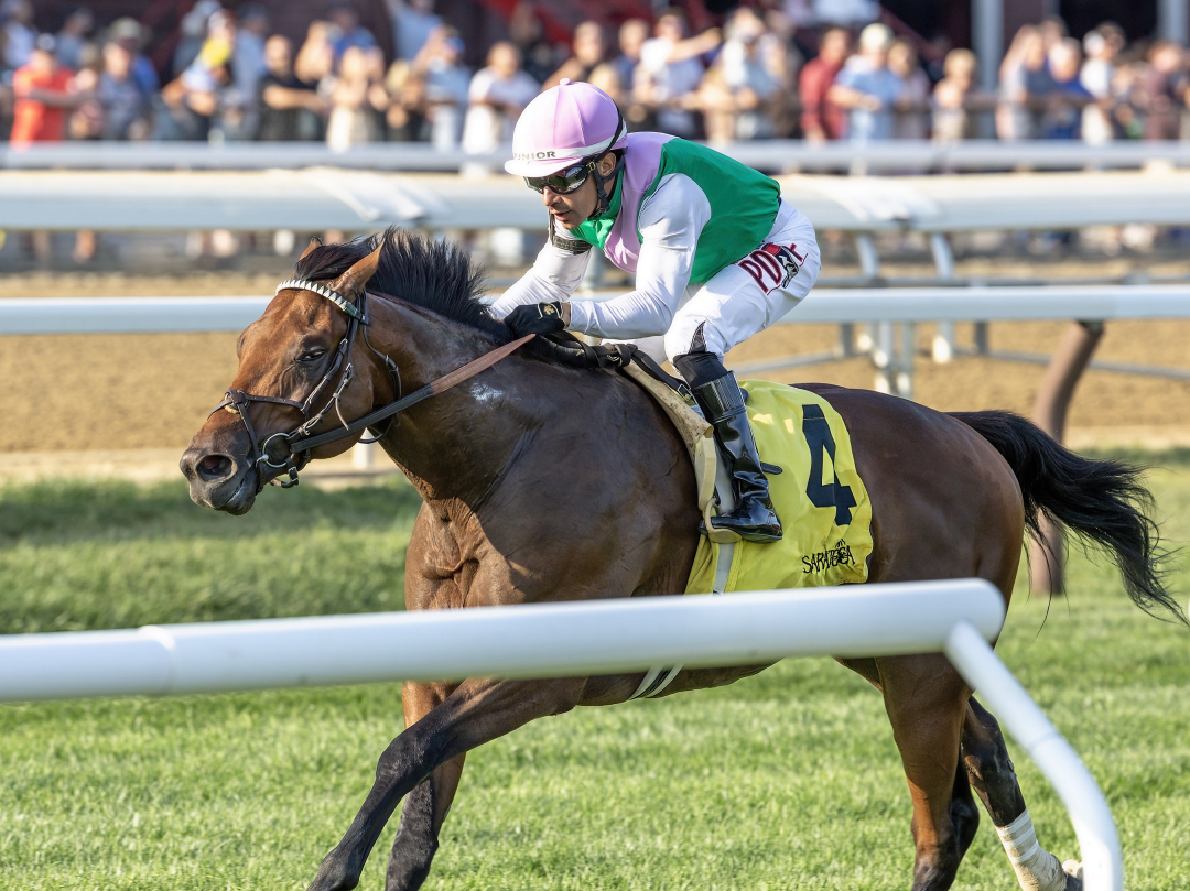 Governor Sam, a popular and easy winner of the Grade 3 Quick Call here last month, raced forwardly placed just off the early leaders, advanced to take command on settling into the stretch, edged clear, but could not resist the winner’s final surge. It was a half-length farther back to No Evidence, who rallied mildly to finish third.