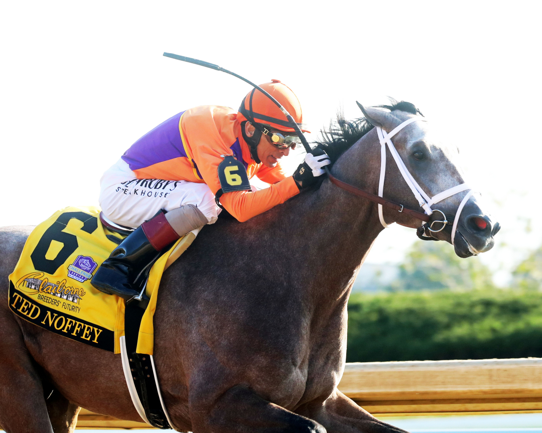Ted Noffey is the likely favorite for the Breeders’ Cup Juvenile off his 2 3/4-length win in the Breeders’ Futurity that earned him a Beyer Speed Figure of 97. He is unbeaten in three starts, all by open lengths, after winning his Saratoga debut and then dominating the Grade 1 Hopeful with a 98 Beyer.