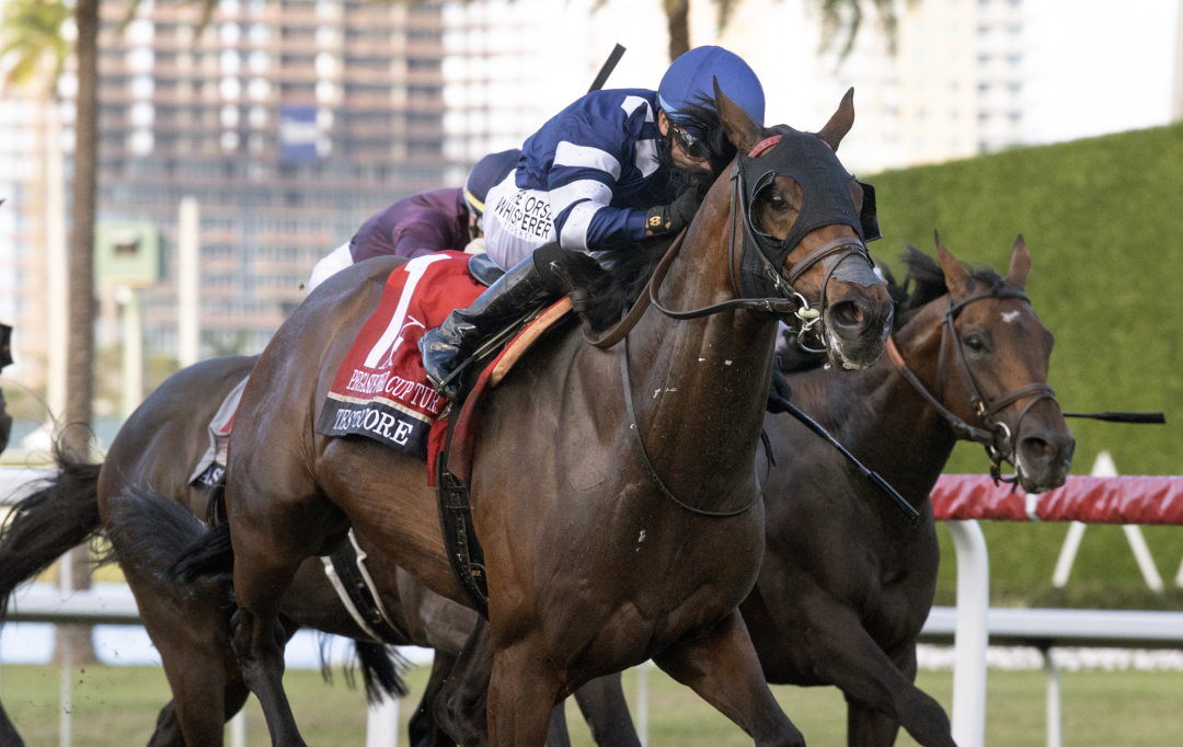Destino d’Oro, upset winner of Saturday’s Grade 2, $500,000 Pegasus World Cup Filly and Mare Turf, will likely be pointed to the Grade 1, $650,000 Jenny Wiley Stakes at Keeneland on April 12 with one race in between, trainer Brad Cox said Sunday.