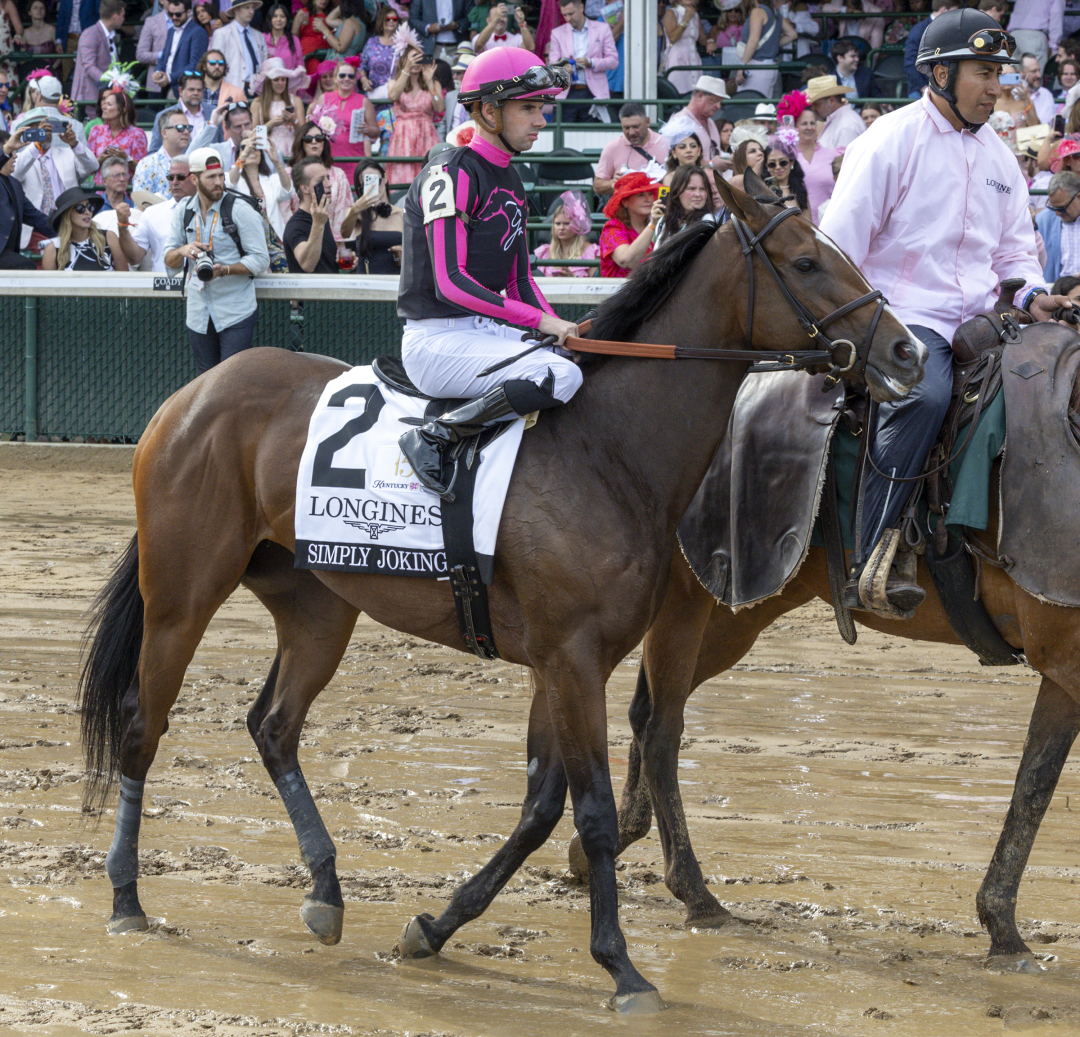Emisael Jaramillo rides Simply Joking, who figures for a cozy trip tucked right behind Nafisa. Simply Joking, a Grade 2 route runner-up last year before finishing last of 13 in the Kentucky Oaks while trained by Whit Beckman, has won two races and $380,750 from eight starts.