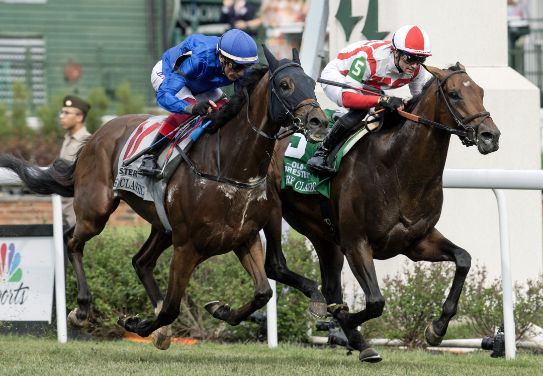 The Americans hit hard, too. Program Trading won three Grade 1s before going to the sidelines for more than a year. He narrowly missed landing the Bernard Baruch at Saratoga coming back from the long break, and his vanquisher, Donegal Momentum, also runs Saturday.