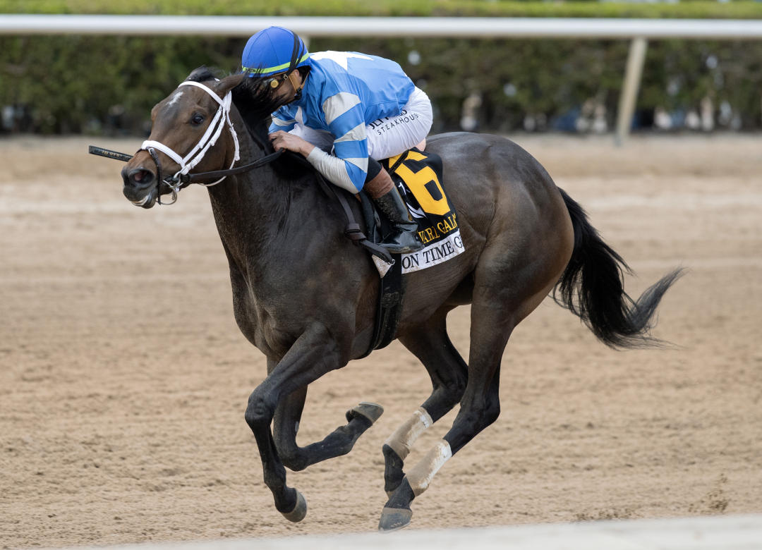 HALLANDALE BEACH, Fla. – On Time Girl became a Grade 3 winner for the first time and got a whale of an education in the process, overcoming an eventful trip to ultimately register a convincing three-length victory over Imperatrice Saturday at Gulfstream Park in the $175,000 Forward Gal Stakes. The win was the fourth on the card for jockey Irad Ortiz Jr.