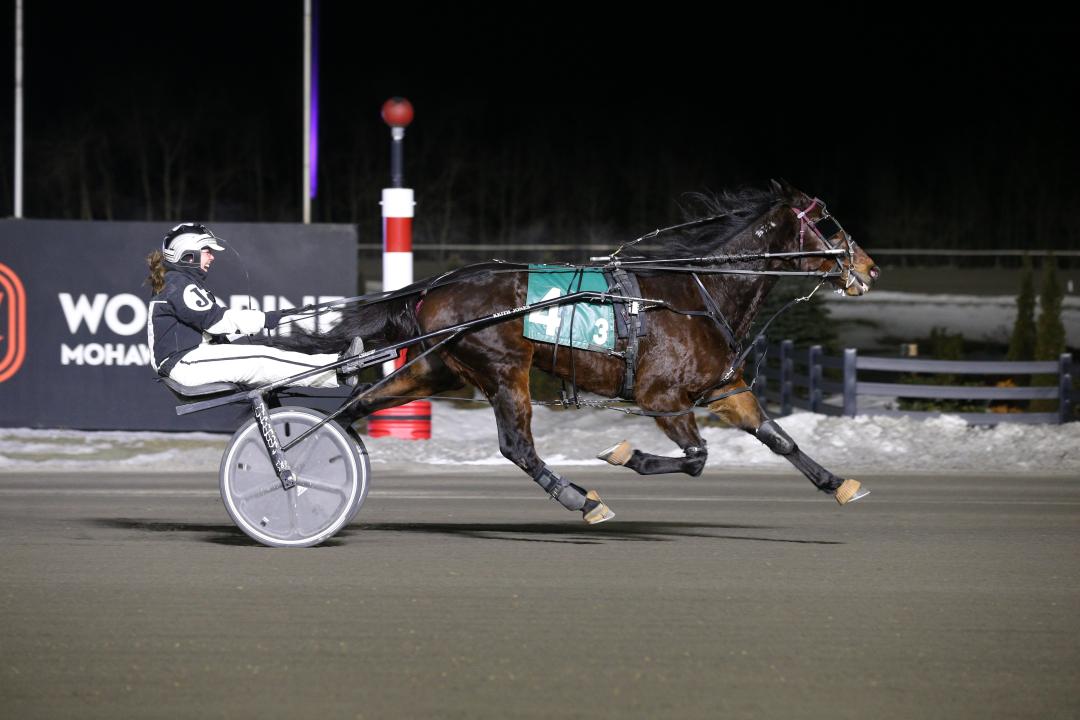 In last year’s edition of the all-women driving race, Maggie Jones piloted 4-year-old trotter Veracruz to capture her first Woodbine Mohawk Park victory and 9th career win.